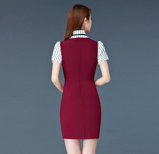 棗紅色商場專柜營業(yè)員工作服款式模特展示圖棗紅色商場專柜營業(yè)員工作服款式模特展示圖二